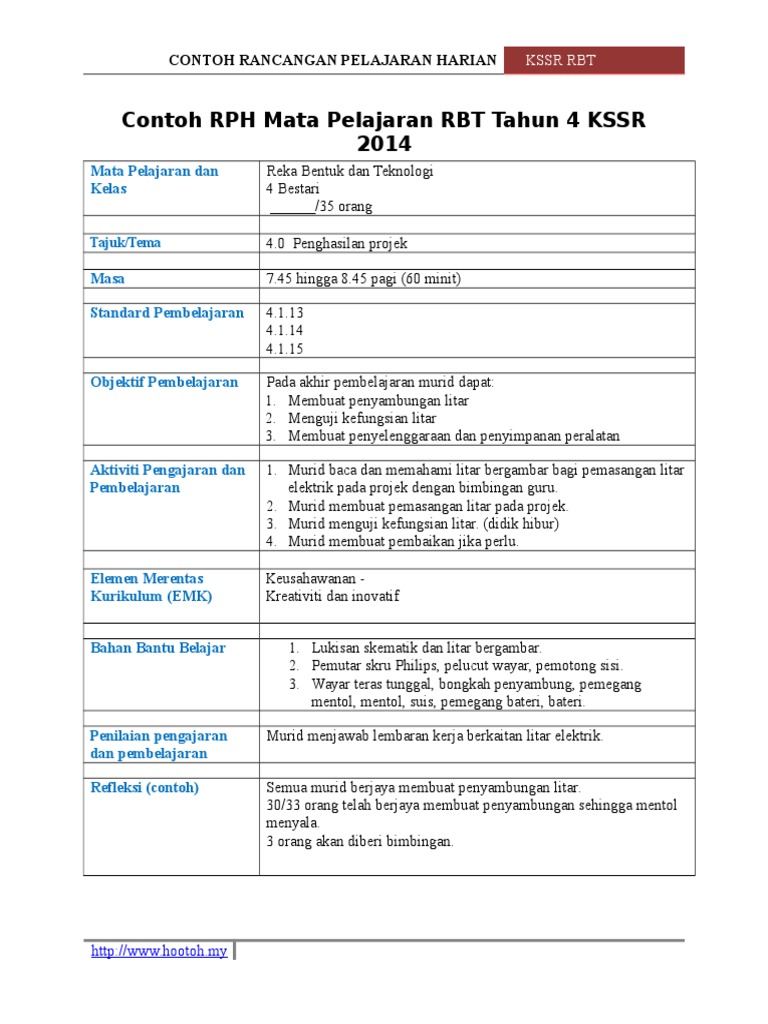 Pendidikan islam : rekod pdpc (pengajaran dan pemudahcaraan) kssm rbt (reka bentuk dan teknologi) tingkatan 2 (sb). Rph (rancangan pengajaran harian) rbt tahun 5. Seperti yang kita sedia maklum, reka bentuk dan teknologi (rbt) merupakan mata pelajaran yang diajar kepada murid tahap 2 sekolah rendah iaitu tahun 4, 5 dan 6. Rph rbt tahun 5 adalah rancangan pengajaran harian yang perlu disediakan lebih awal oleh guru sebelum menjalankan sesi pegajaran dan pembelajaran. Please respond to the email sent.